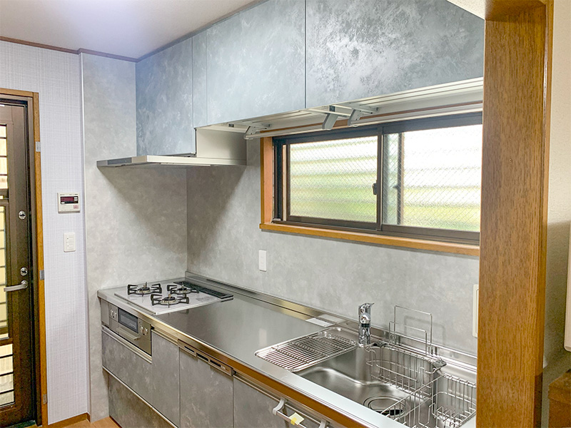 施工前のキッチンは、タイルの目地に汚れがしみ込んでしまっていたり、レンジフードの掃除に手間がかかるような状態でした。しかし新しいキッチンに変わり、それらが改善されたのでお客様も喜んでくださいました。