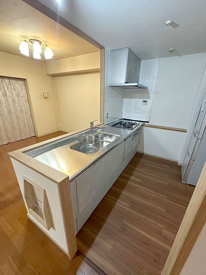また、床はキッチン空間のみフロアタイルを上張りすることになったので、リビングの床の色に近い色を選びました。仕上がりに違和感もなくきれいになり良かったです。
