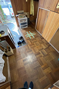 一部床が破損している箇所もあったため、フローリングを上貼りする前に一部補修をしました。