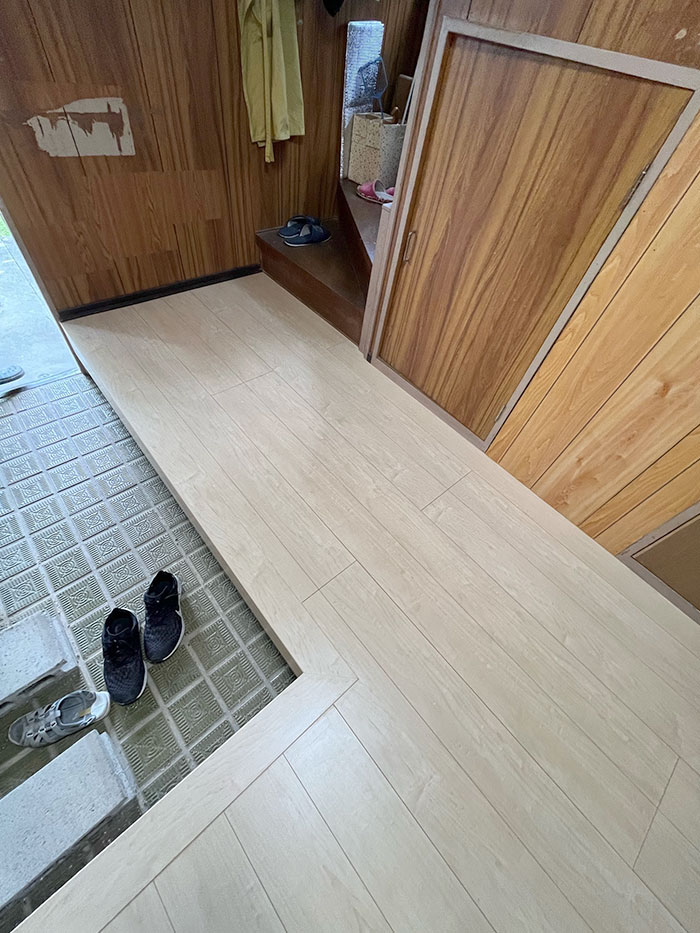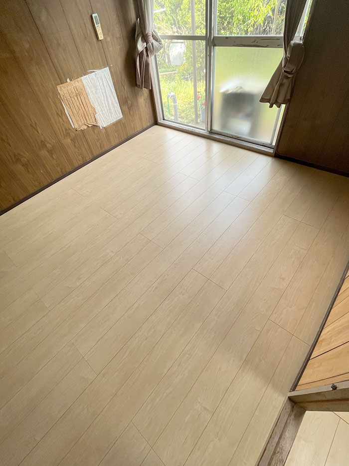 下見をさせていただいた際、いくつか床の沈みが気になる箇所があったため上貼り施工を提案させていただきました。